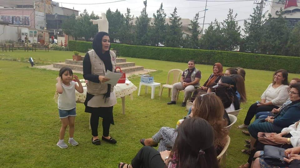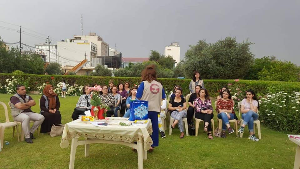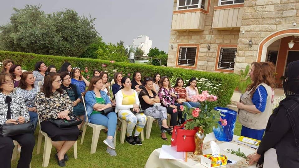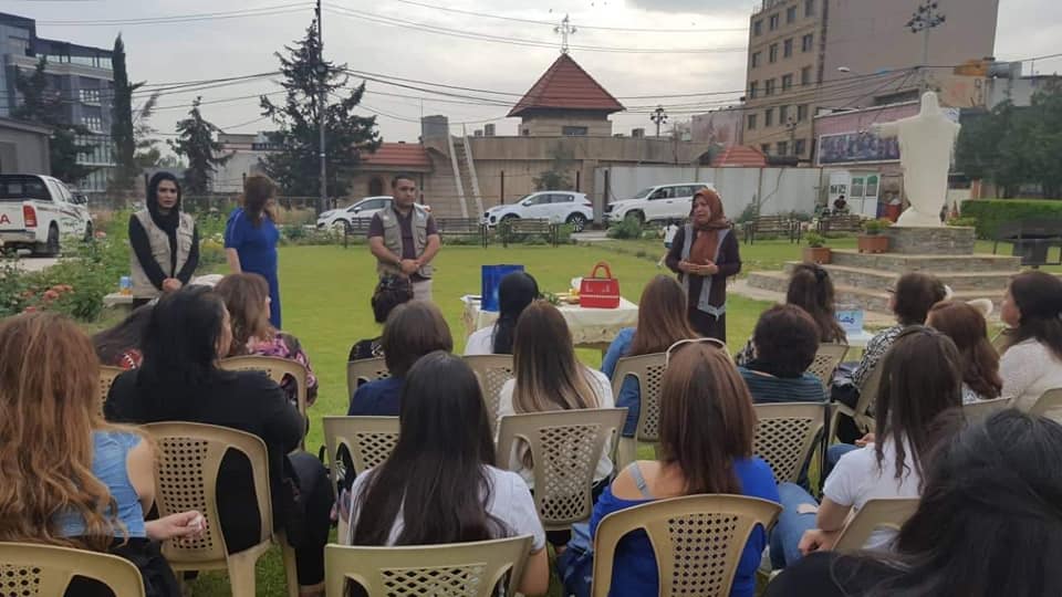 At the center of our organization in Ankawa, Garden (the monastery of the nuns of the Sacred Heart). A seminar was held for 26 Christian refugees and displaced. The lecture was presented by the social researcher. Within the framework of the project to enhance access to protection, participation, and services for refugee, displaced and host communities. Funded by the European Union (MADAD fund) and in partnership with the Euro-Mediterranean Women's Initiative (EFI). This meeting was held in cooperation with Women Empowerment Organization and Baghdad Women's Association.
