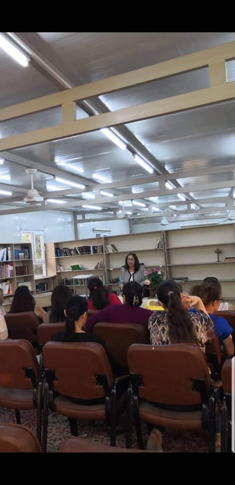 Presenting a lecture for 20 displaced and refugees Syrian Christian by Dr. Hana Fouad on gynecological diseases.