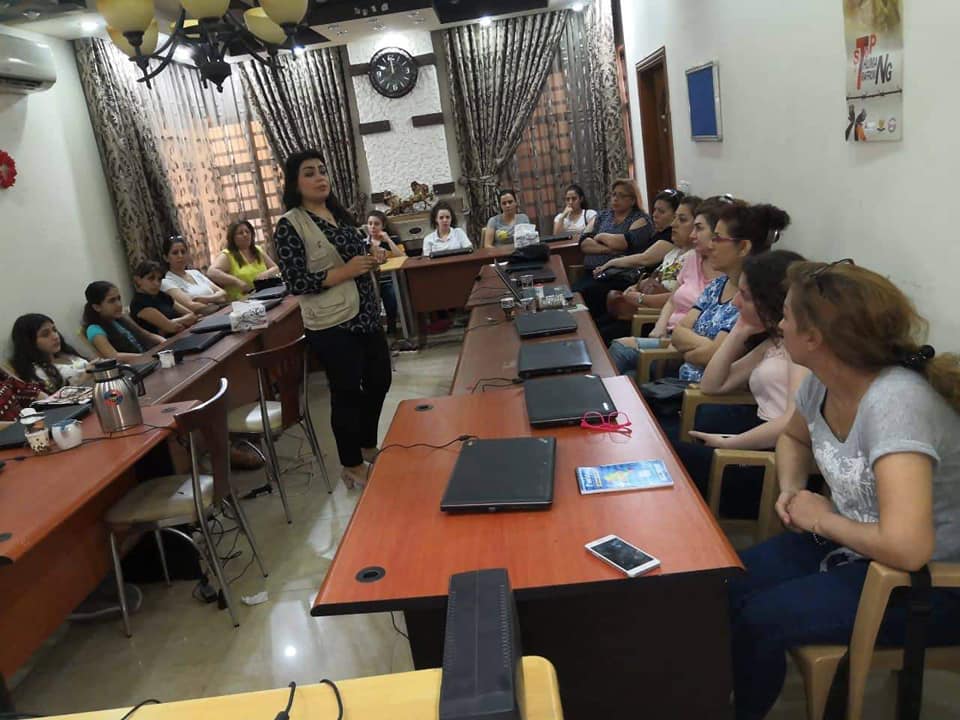 At the center of our organization in Ankawa. A seminar was held for 23 women's displaced and refugees. The lecture was given by our lawyer, on law against domestic violence and other laws. Within the framework of the project to enhance access to protection, participation, and services for refugee, displaced and host communities. Funded by the European Union (MADAD fund) and in partnership with the Euro-Mediterranean Women's Initiative (EFI). This meeting was held in cooperation with Women Empowerment Organization and Baghdad Women's Association.