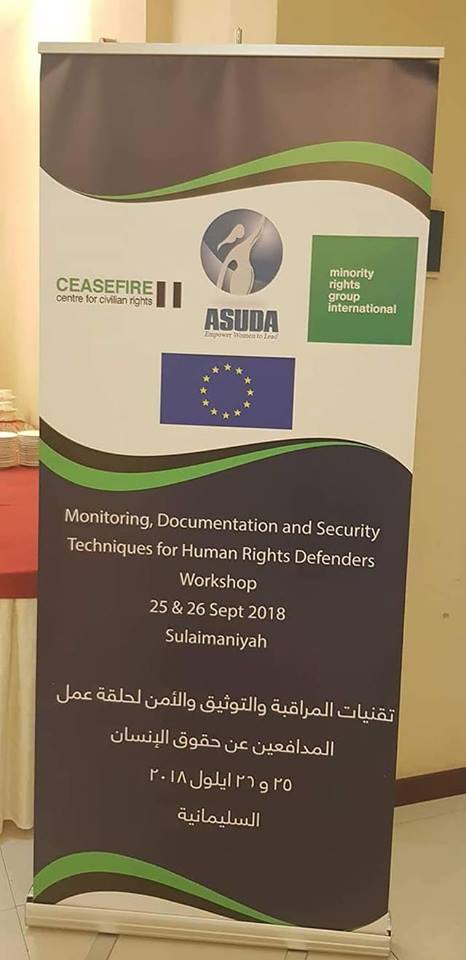 Asuda, in partnership with the Minority Rights Group, held a two-day workshop (25-26 September 2018) on "Monitoring, Documentation and Security Techniques for Human Rights Defenders". The workshop was attended by a mix of activists and defenders of human rights NGOs from various governorates of Iraq.