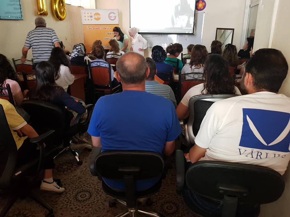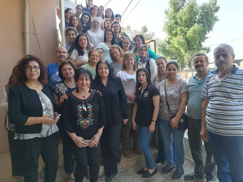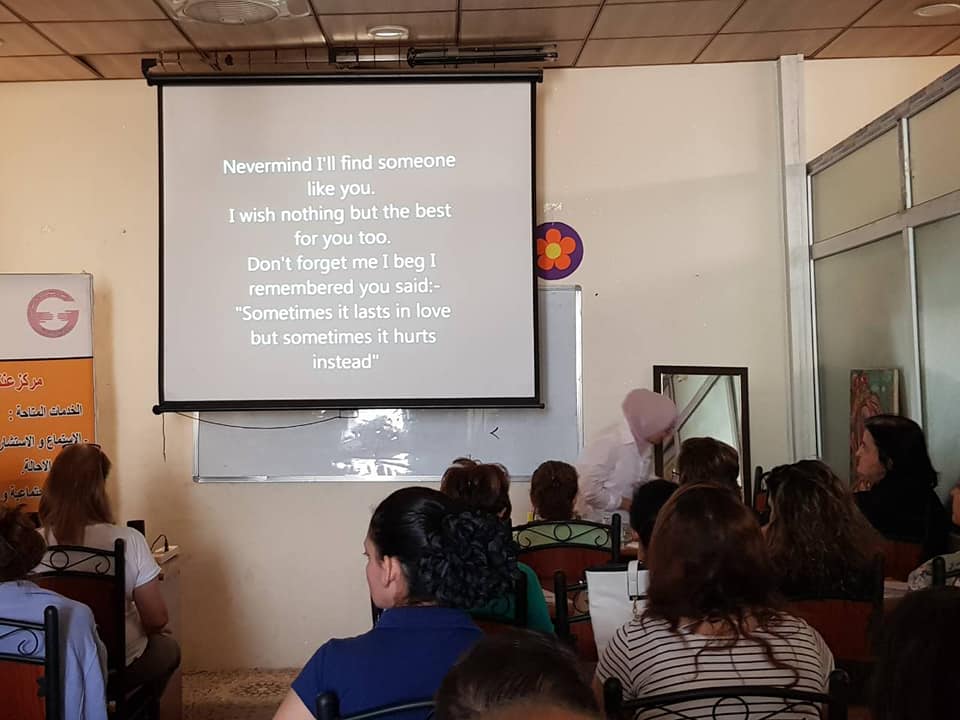 The last day of an English course for Syrian and Iraqi Christians displaced at our organization center in Ankawa city, for 10 days from (7.10.2018 - 18.10.2018), The number of participants in the course was 34, participants in this course were both sexes. This course was in cooperation with the UNFPA Organization.