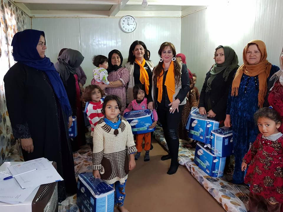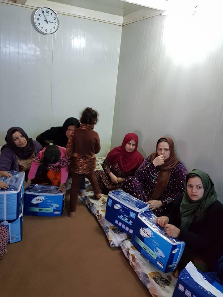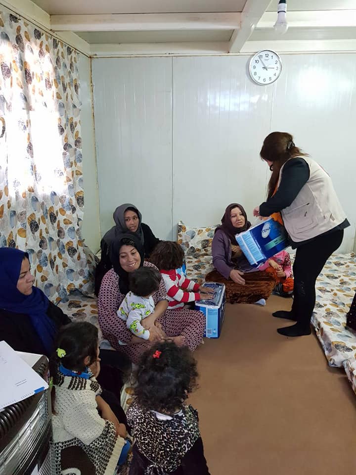Distributing the children's clothing to displaced in Baharka Camp.