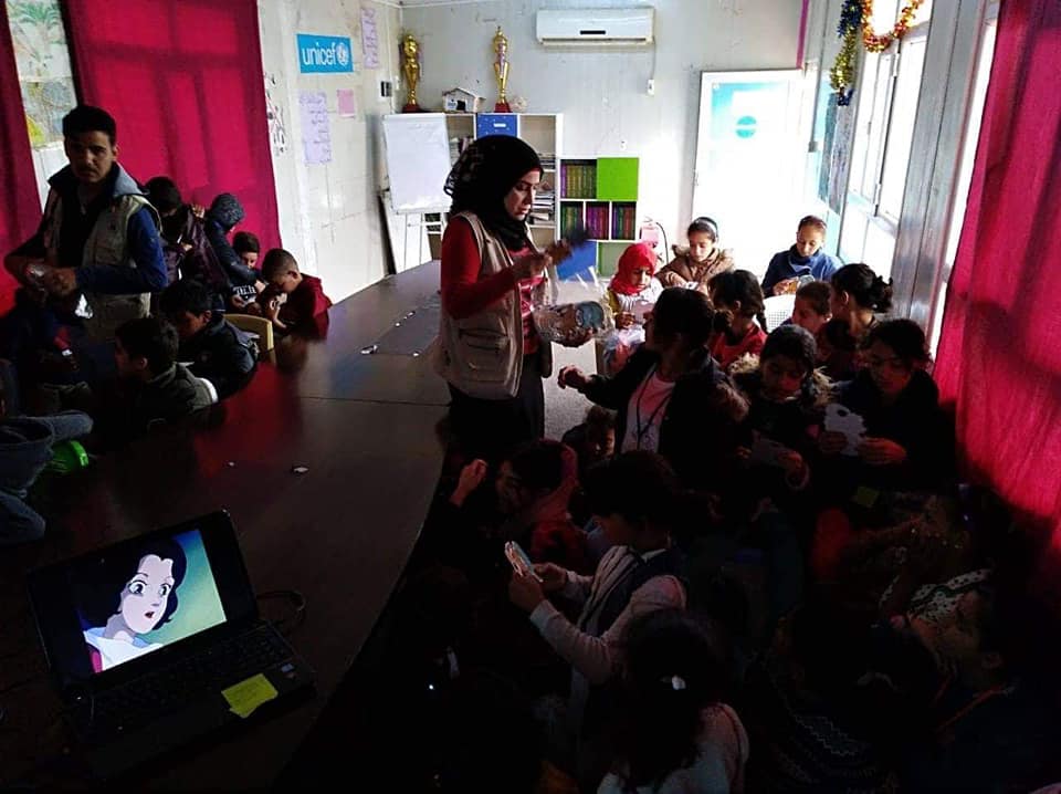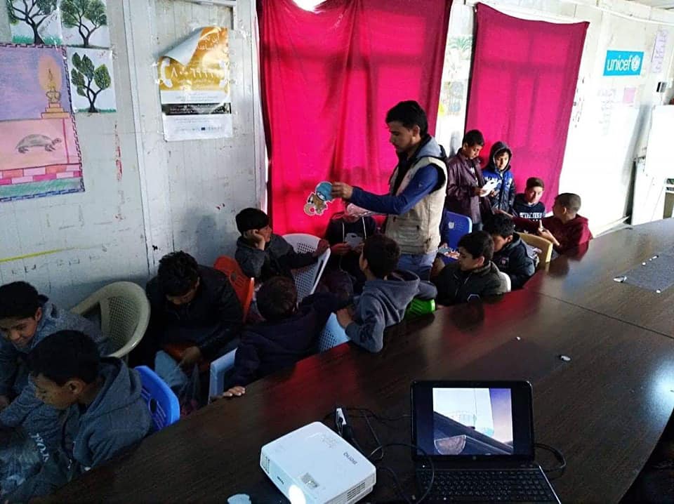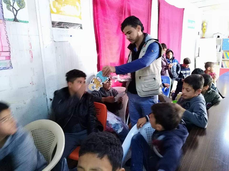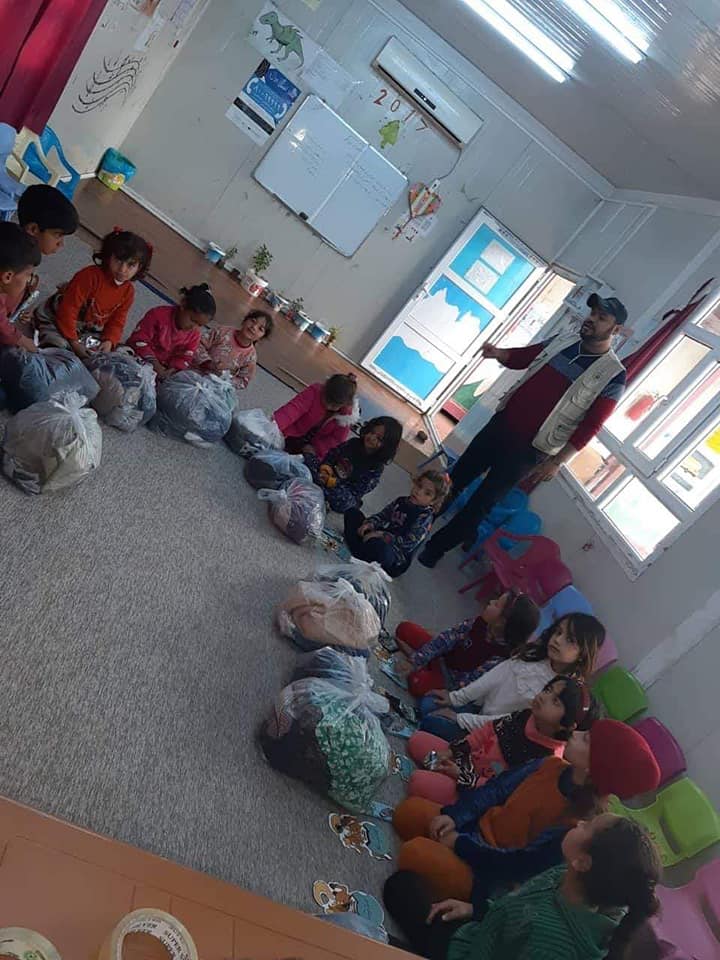 Distributing the gifts to 200 Refugee children in Baharka Camp. in cooperation with the Bring hope Organization.