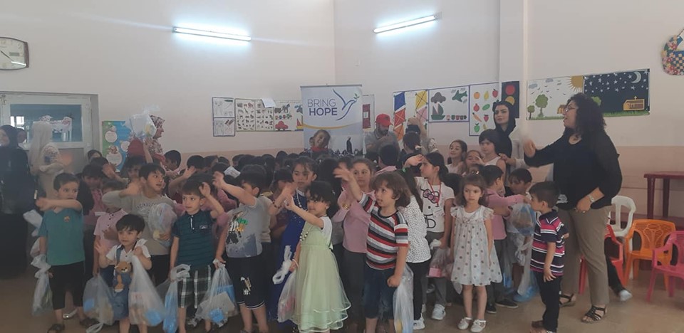 Distributing the gifts to 200 children of the Galawez Kindergarten, this activity was in cooperation with the Bring hope Organization.