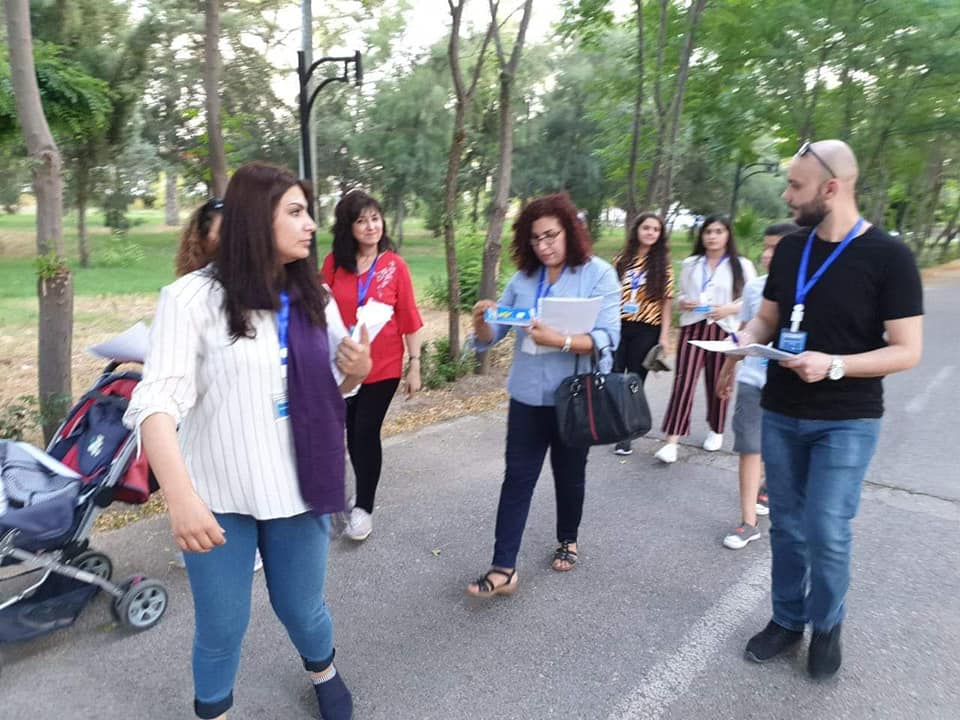 A group of members of our organization in the Sami Abdul Rahman Park to identify the shortcomings and then address them.