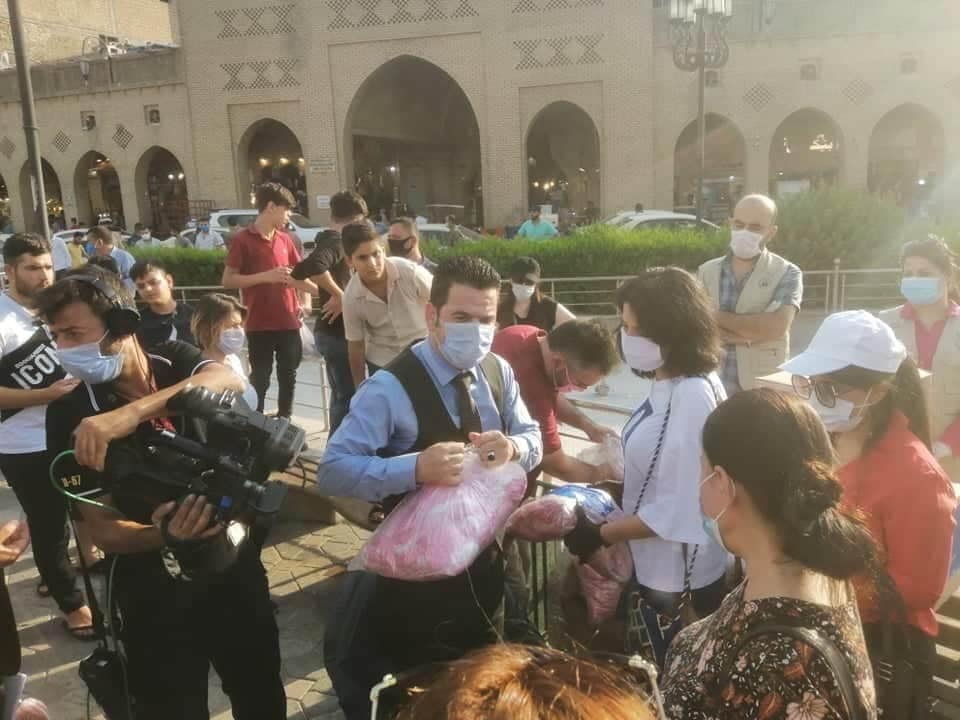 With the initiative of (ئازاد بوون بۆ تواناسازى و تاكگه رايى), and with the participation of several personalities and organizations, as well as activists in the city of Erbil, approximately 5,000 masks were distributed to citizens in the Erbil city center. We thank all the participating activists. We hope everyone adheres to the health guidelines